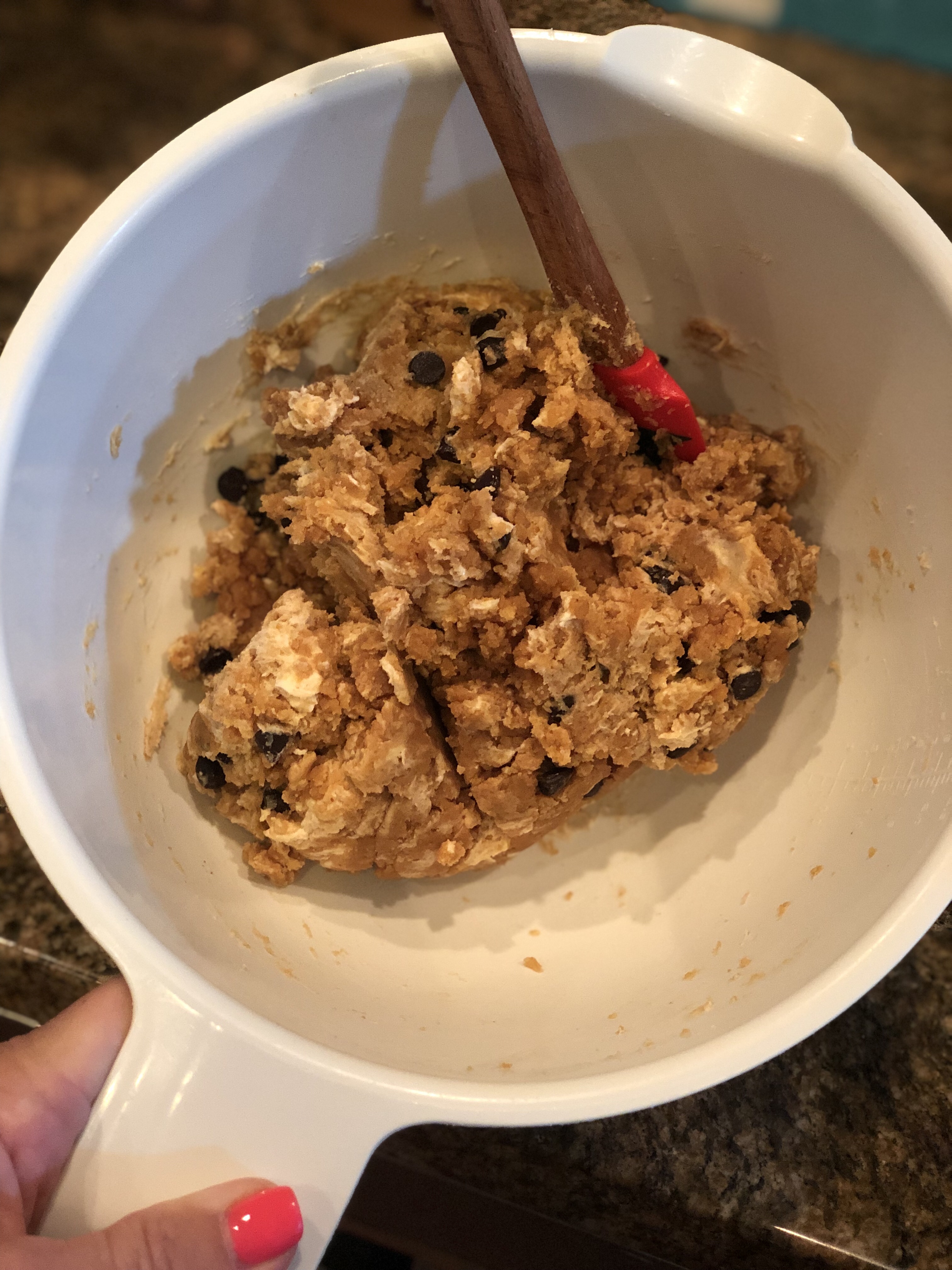 Mix all together – then fold in the Lilly’s chips after mixed.